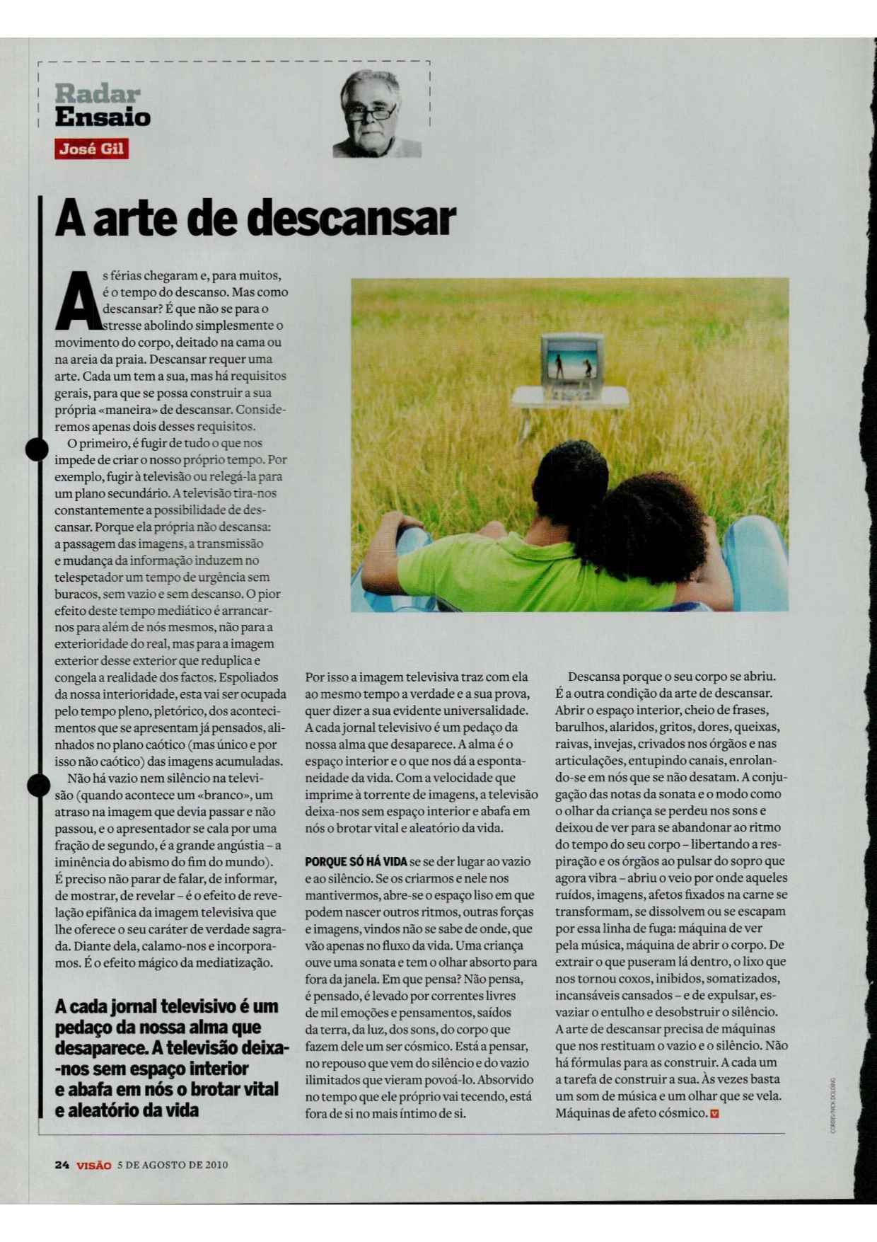 VIDA MODERNA: A arte de descansar (José Gil – Visão 5 Ago. 2010)