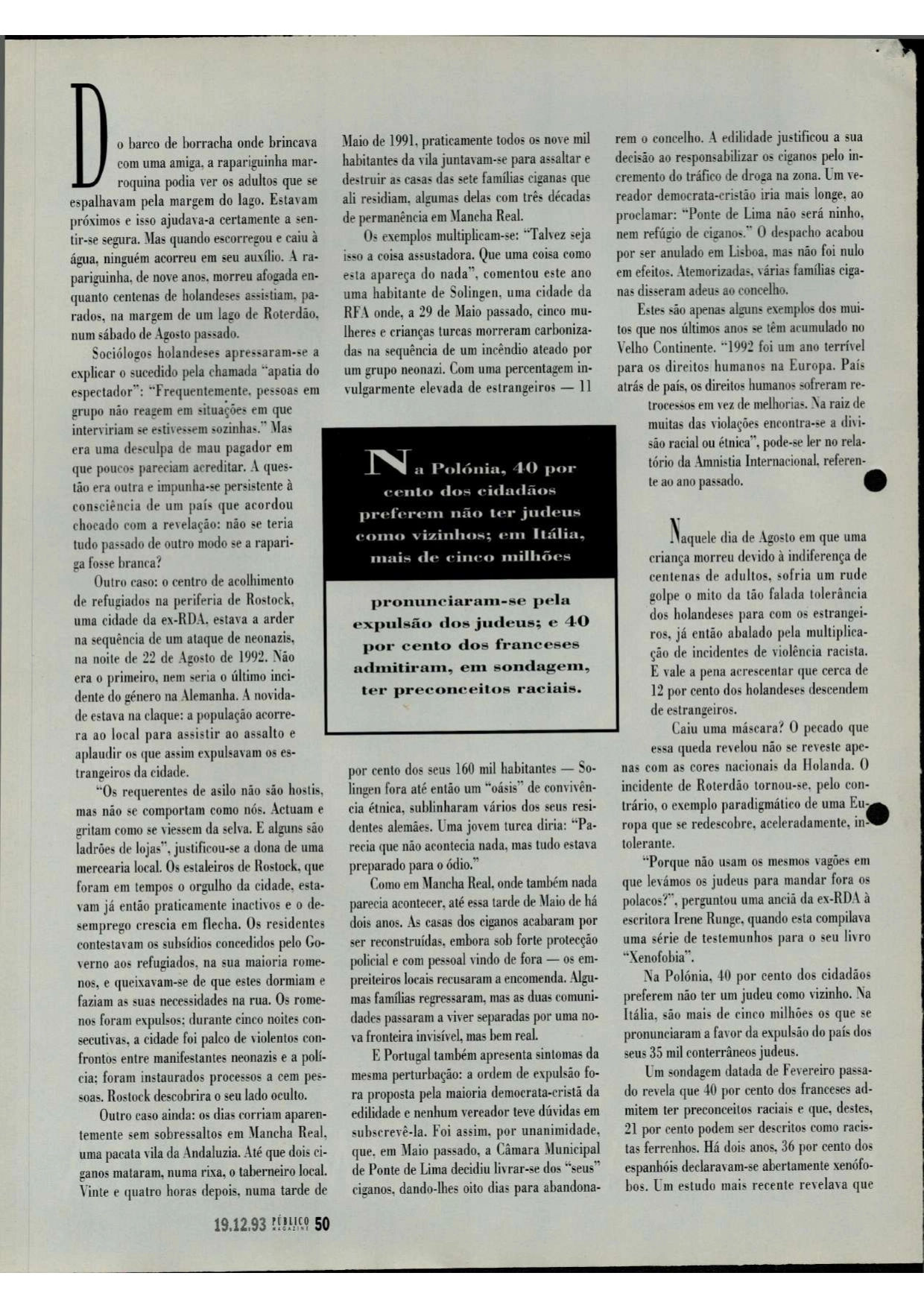 SOCIEDADE (impresso): Estranhos numa Europa assombrada (Público 19 Dez. 1993)