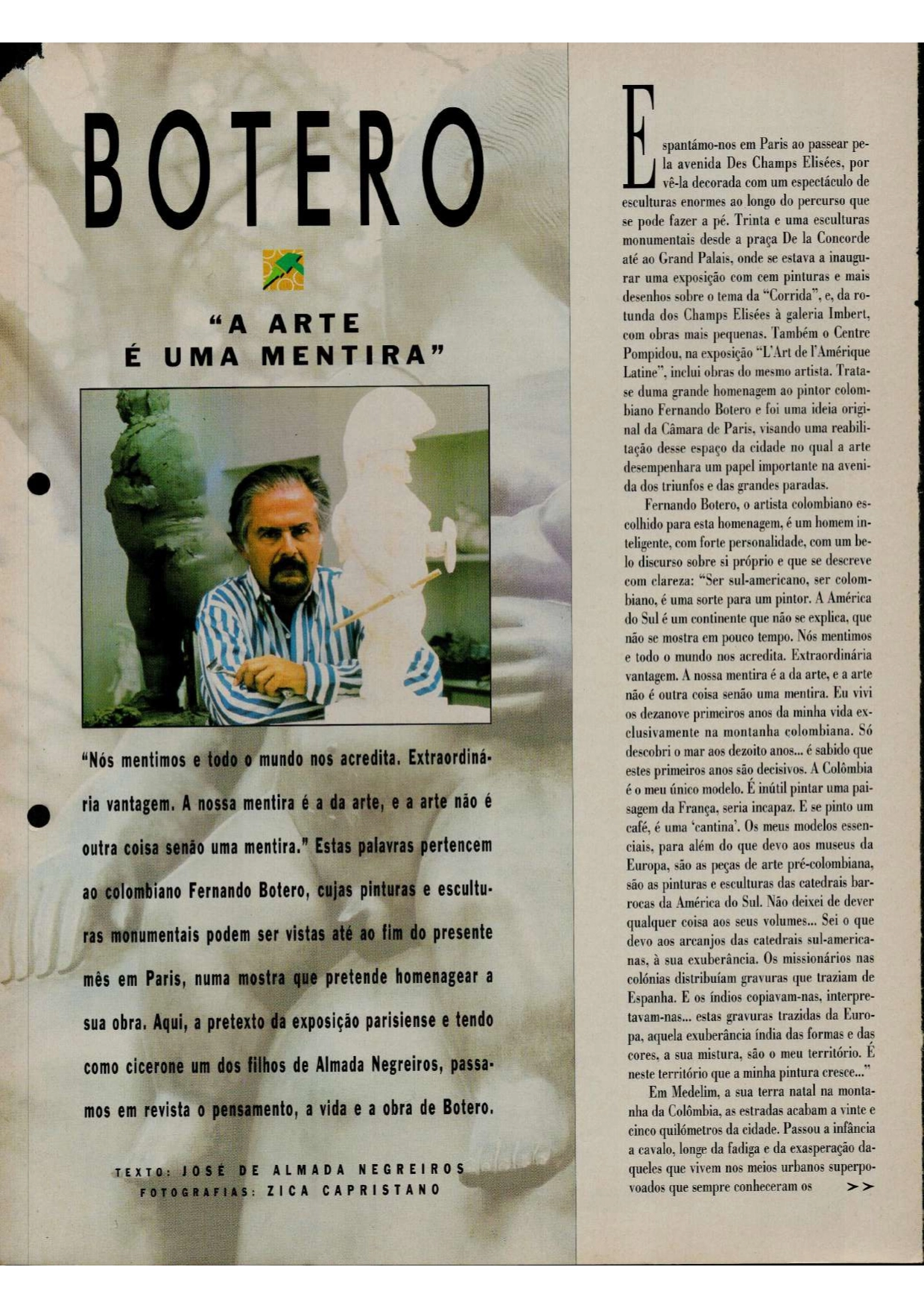 Botero: “A arte é uma mentira” (Público 10 Jan. 1993)