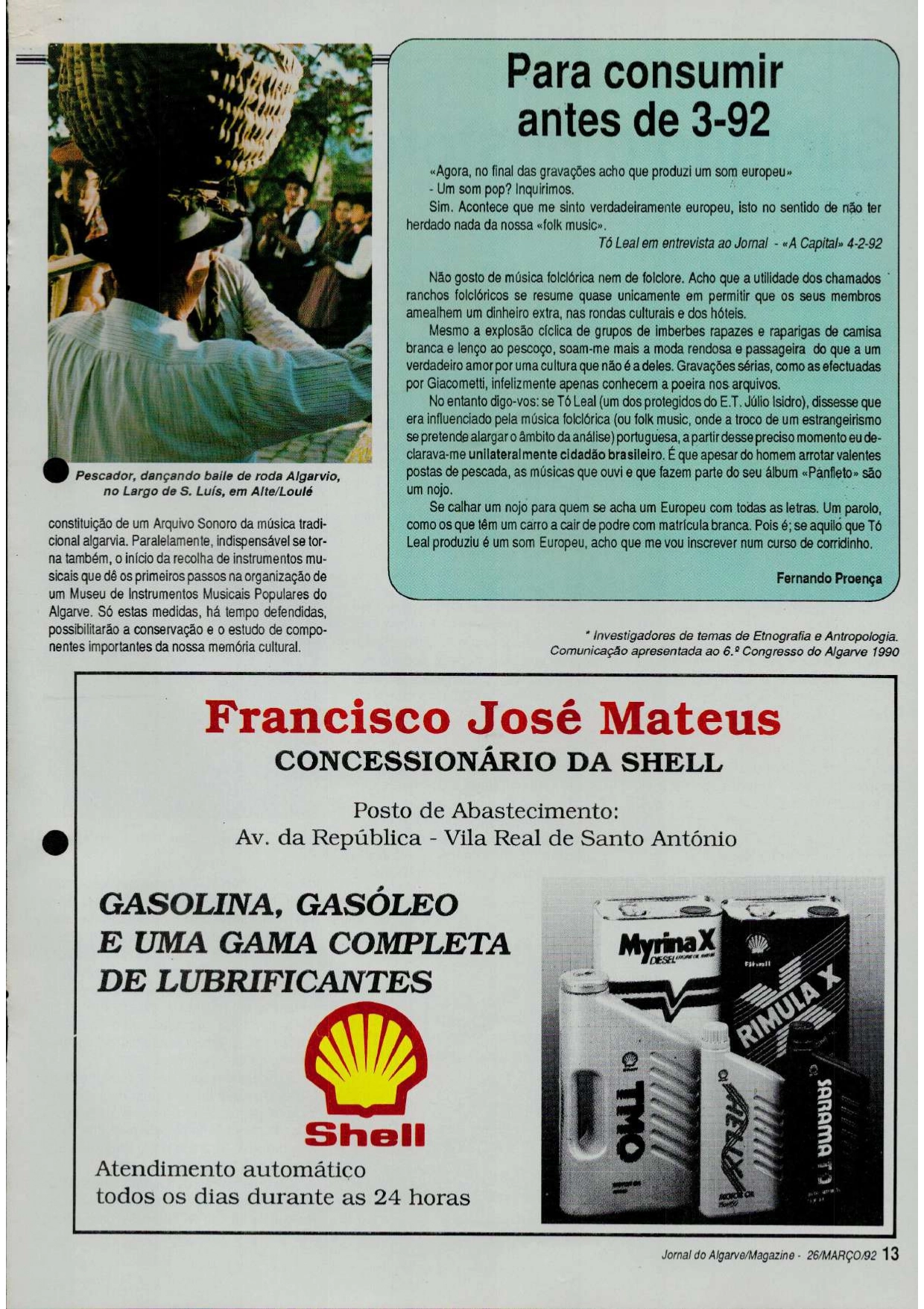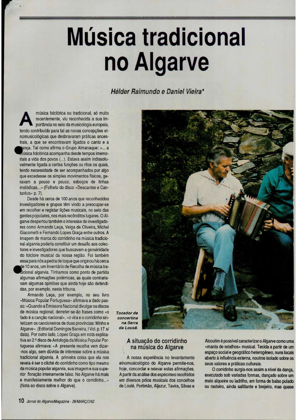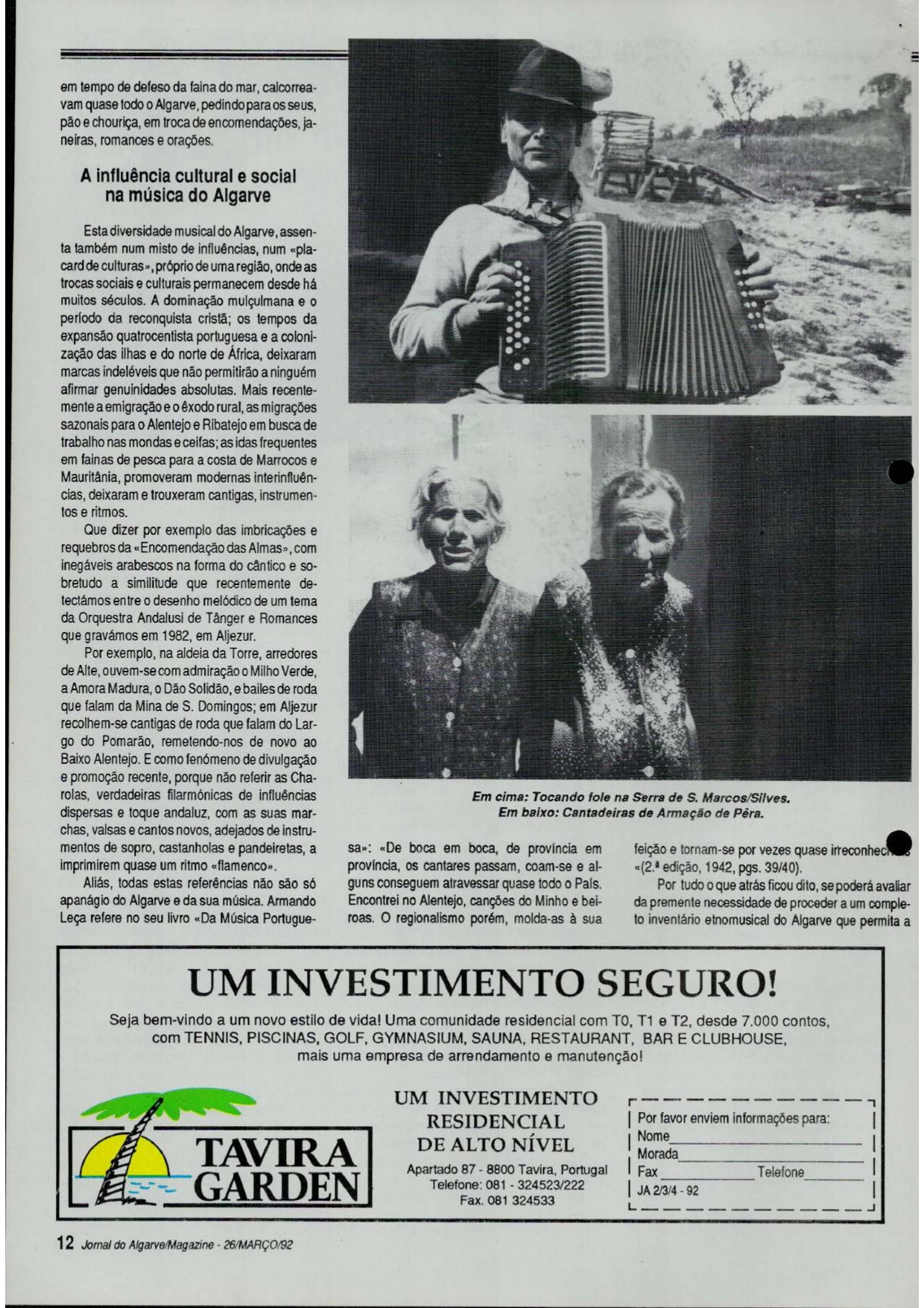 Música Tradicional no Algarve (Jornal do Algarve 26 Mar. 1992)
